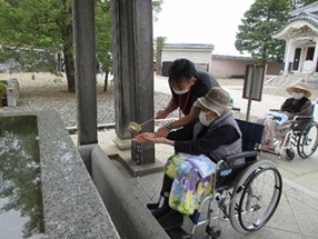 手水舎で手と口を清めます。