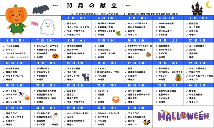 🍂10月の献立表🍂
