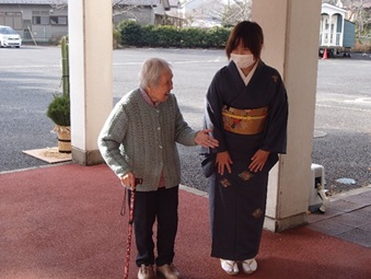 着物👘を着た職員がお出迎えさせて