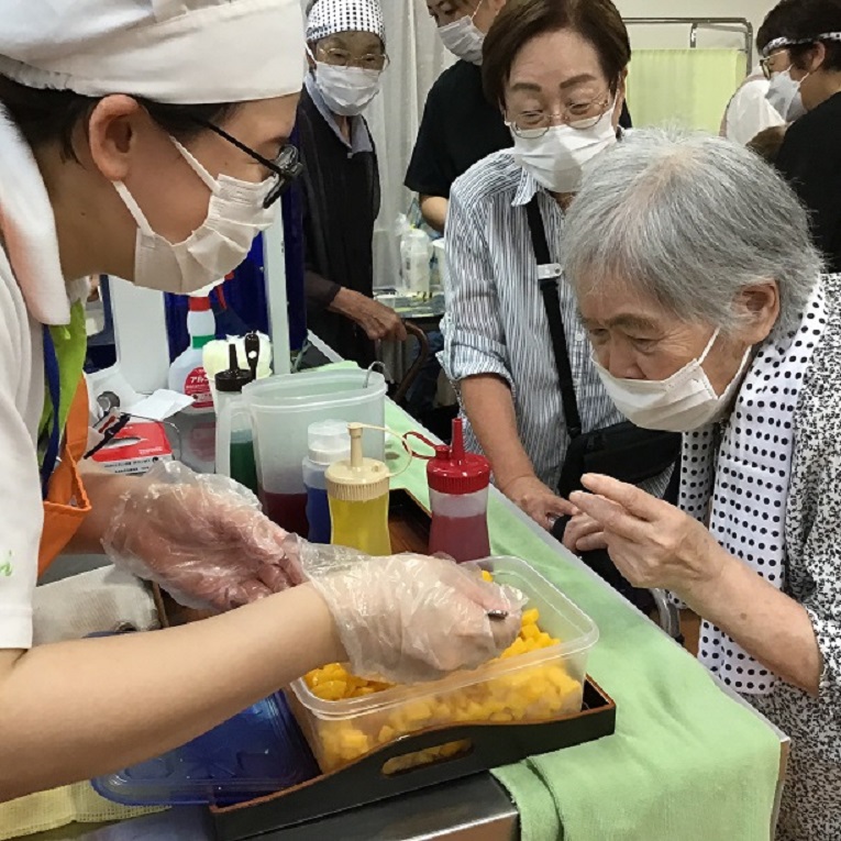 イチゴ、メロン、レモン、ブルーハワイのほか、園芸クラブの皆さんで育てた特製しそシロップやトッピングで、はくすい農園産のマンゴーも大好評!