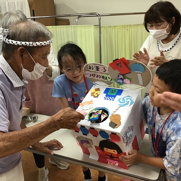 お菓子つかみ取り♪たくさんのボランティアの皆さんと夏休みこども体験の小中学生も来園してくれました。暑い中お越しくださり本当にありがとうございました!