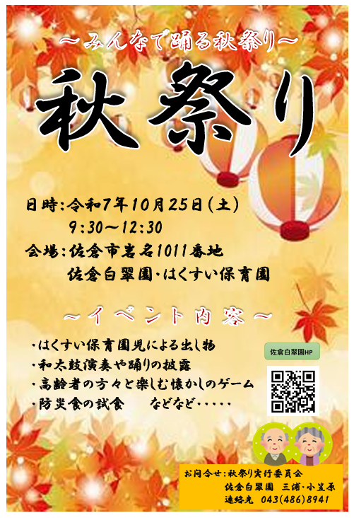 今年も『佐倉白翠園.はくすい保育園合同秋祭り』を開催いたします。