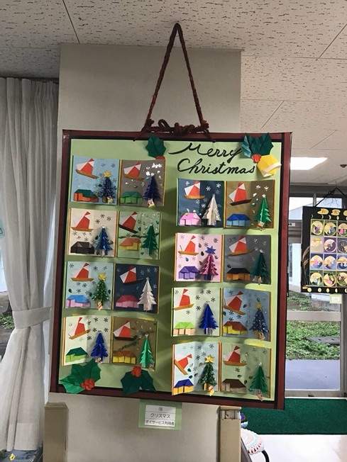 皆さんが個々で作成した作品を連ねています。折り方・貼り方一つ一つが違っていて、とても味がありますよね!