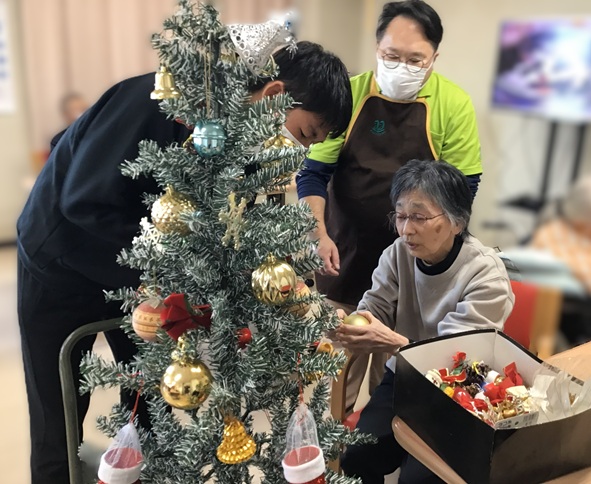 来たるクリスマスに向けて、デイサービスでもツリーの飾りつけをしました。