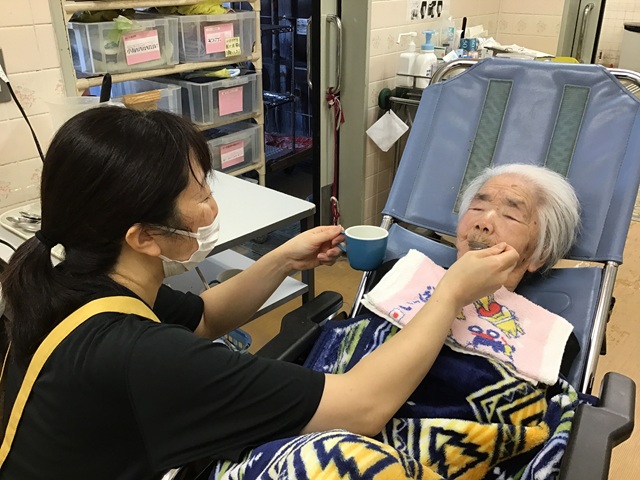 従来型 入浴介助 2026年1月28日 最終更新日時 : 2026年2月6日 佐倉白翠園管理者入浴後の水分摂取。週2回の入浴は入所者にとっても楽しみな時間です。やけどや転倒などに気を付けながら介助を行っています。入所者の気持ちよさそうな顔を見るととてもやりがいを感じます。