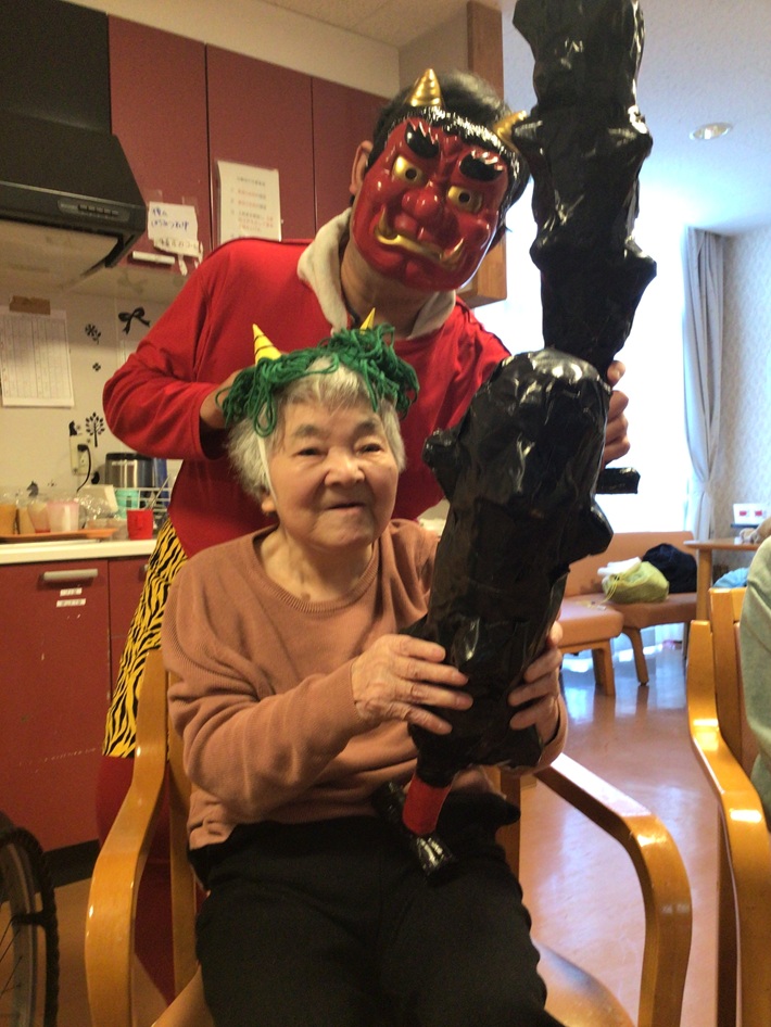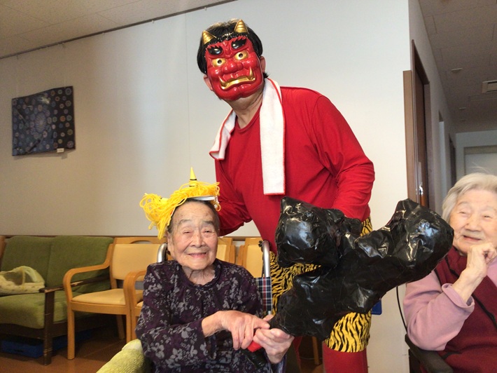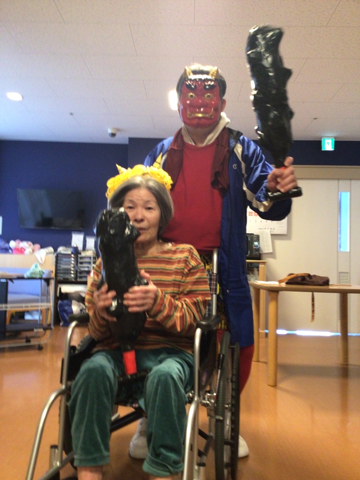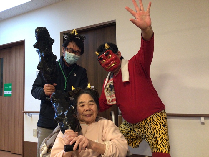入居者様もご家族様もノリノリで鬼になりきっていました。