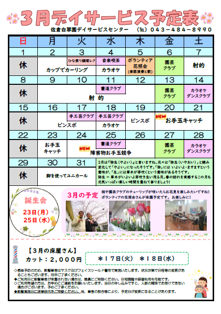 3月の予定(デイサービス)